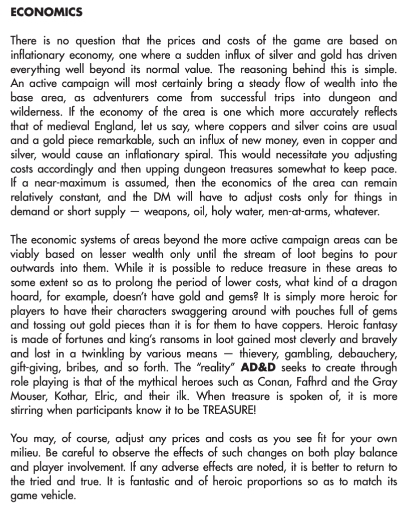 This issue — borderline idiotic prices and insane amounts of gold and silver flooding dungeons — plagues all editions of Dungeons & Dragons to varying amounts.