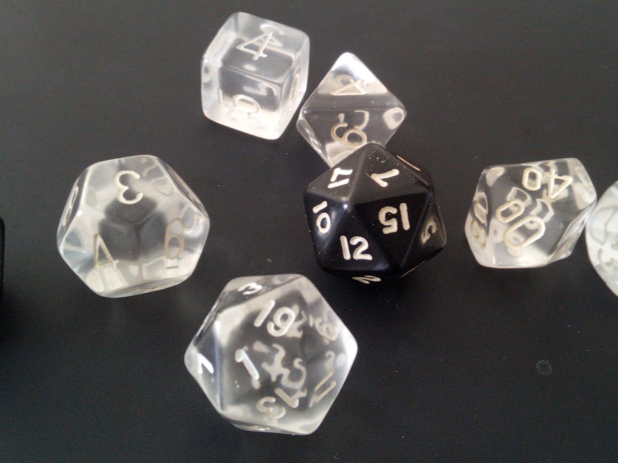 They are an essential part of the game, and while there are diceless systems, they feel incomplete to me. The little lumps of plastic that represent the will of the gods, or the fickle meanderings of Fate itself, they enrich the experience; they belong.