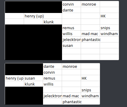 Wyndham brought trusty Remus and clever Willis. Dante brought dependable Susan and the fresh addition Corbin. Dr. Klunk was aided by the flying bot Henry.