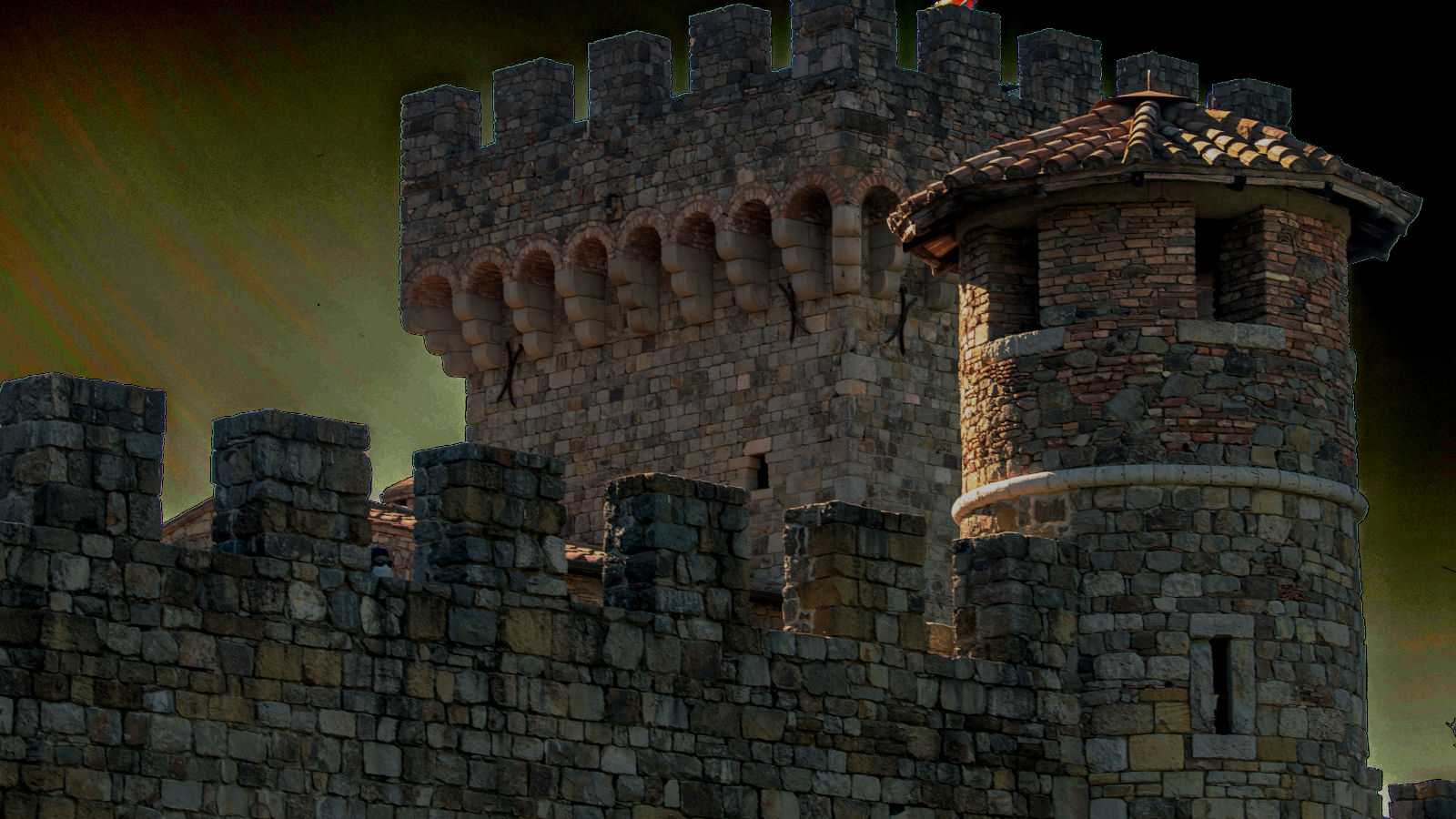 The square tower had one tiny door to the crumbling battlements and one normal door on the ground floor. Jayne and Mary went up to guard that exit and let the menfolk go in through the front door. But the menfolk decided, after opening the door, to get the key ring to the women. First they wanted to throw it, but the danger of missing and throwing the keys into the woods was too great. So Henry braved the battlements to bring the keys, even though Jayne hissed that she did not need them. With one hand occupied holding the keys, he was not that sure on his feet, slipped, and fell into the courtyard. He took a scar — he broke his right leg. But he made his WIL save and suffered in silence.