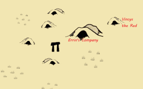The first idea of the group was to get into Vincys’ grave first to secure the cauldron. But it turns out that the while several burrows have holes – from fallen trees (Vincys the Red) or sunken ground (northwest) etc. – the one of Errin’s Company has freshly dug entrance. Someone has opened it up using digging equipment, neatly stacked right there. Which means, someone is most likely still in there. Dirk affirms this: Two days ago there was no such entrance. So the big grave mound has to come first. The group inspects the entrance further and finds hoof prints. Goat hooves. The goat-men!! Three or four.