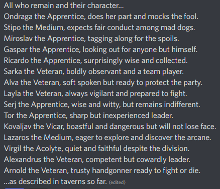 Ivan took it and stepped away from the group to inspect it alone. Boom!! Failed magic save. He was gripped by a curse, wobbled on his feet, broke down. The thieves quickly ran to knock the wicked book out of his hands, flipped it closed with a spear and stepped onto it. The vile whispering that streamed from it ceased, but Ivan stayed wobbly, and cursed: His healing would from now on take twice as long as for others.