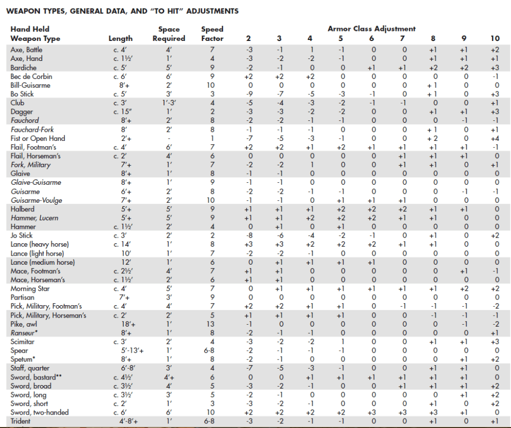 … reveberate in their souls, and others that are deeply fascinated by the clever detail of this table in the AD&D 1e Player Handbook: