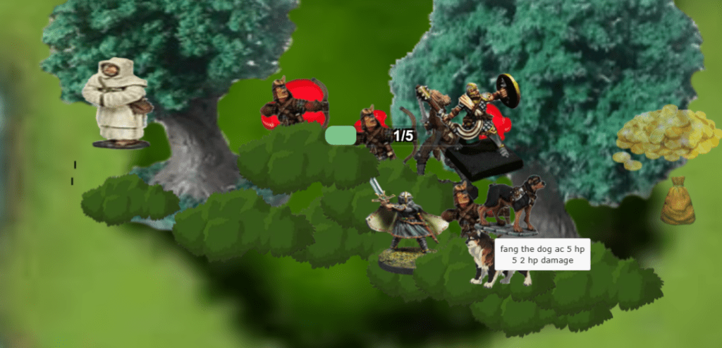 The revived fighter Gilead struck down an archer with mighty blows, while the Vicar saved Mercutio with his last spell, and Mercutio in turn saved Raven. The last two archers attempted to flee and were shot at, one ripped to little shreds by the dogs, the other surrounded and slain by the wounded party.