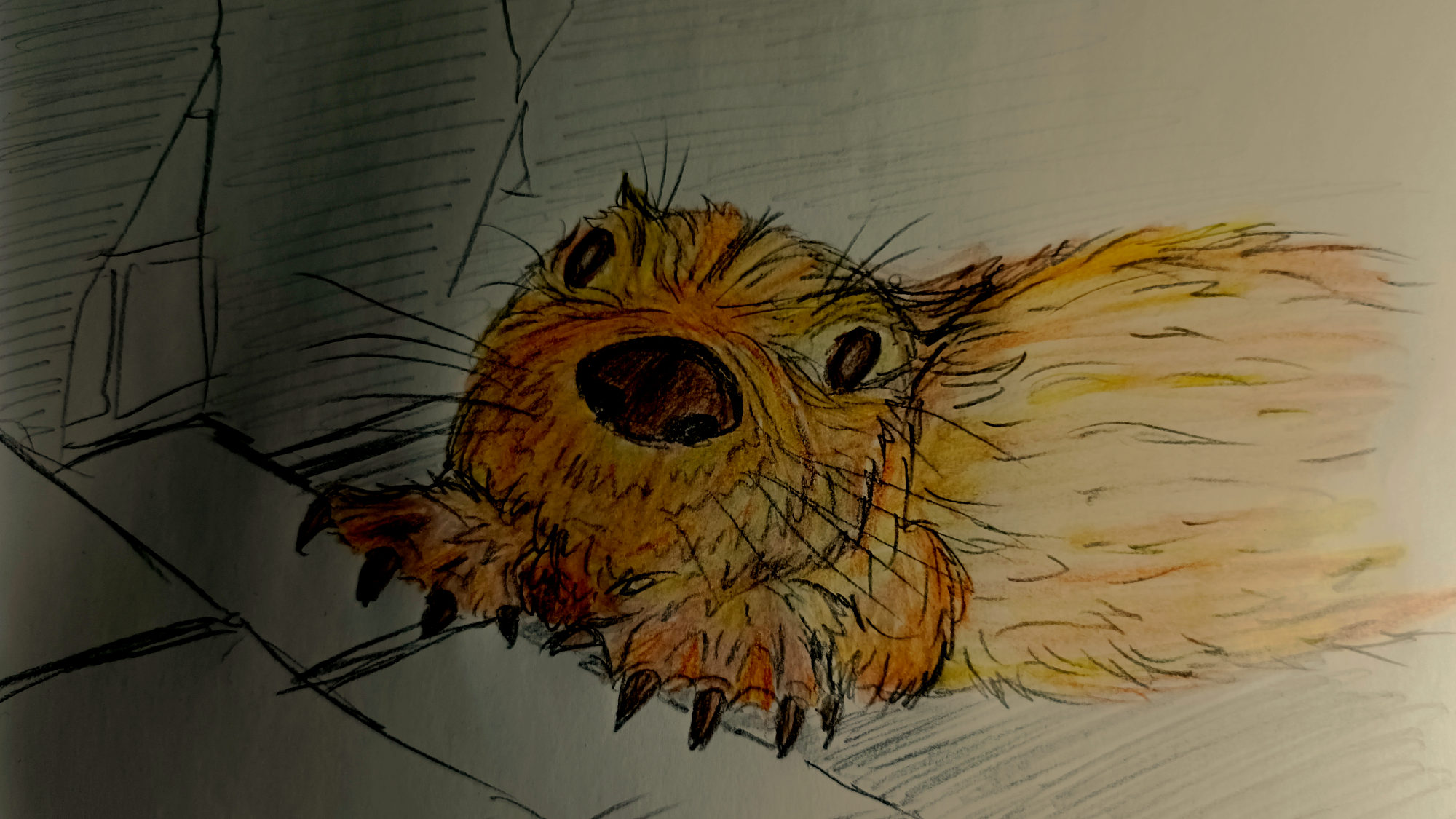 The creatures jumped us like little gremlins, and Heidel cracked one’s head. The rest of us attempted to play nice and just defend, and Apoqulis had the excellent idea of throwing them rations, which calmed them somewhat. Heidel quickly picked up on that vibe and also went full defense.