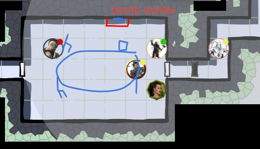 We tried another way farther south, and there we found a door. Behind it we also found a trap, so the druids felt that this was a biiiit too dangerous for them and elected to stay behind in safety.