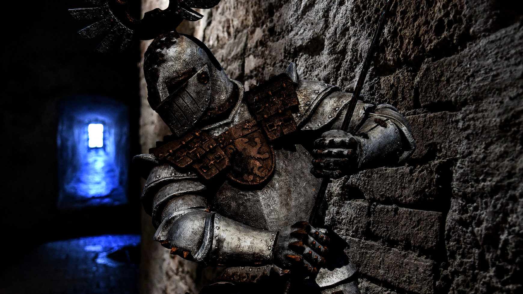 The next day the wizard went in once more to read the magic script on the pauldron. He learned from it that the two statues were two out of four, and they were a prison of souls.