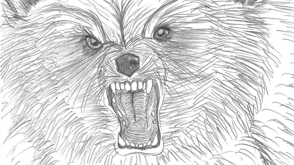 We gave up on the advantage of surprise and instead tied the donkey behind a tree (Apoqulis told him everything would be all right and to just hang tight). Then we moved sideways to get out of the area where we were spotted. But someone intercepted us: A giant cave bear.