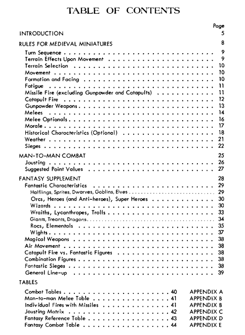 - And it is ordered better, listing spells by power level rather than alphabet, and armor as intuition would suggest (armor, then armor + shield) rather than the way it was done in Chainmail (sometimes so, sometimes differently).