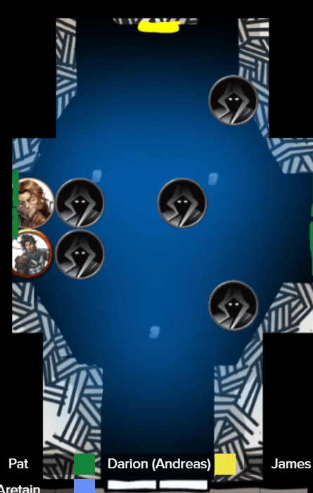 Anyway, we were all pretty down and tired, Darion wounded, Apoqulis without spells, Aretain down to “Ventriloquism” and a slingshot. So we decided to give it a long rest. Darion suggested the safe space we had carved ourselves from the Shadow-room, and not to go through the long dark corridors with the imp-traffic, but rather through the mirror room. For some reason, Darion liked that mirror-room and expected it to be important, while most of the others were creeped out by its quiet, familiar-looking denizens. Maybe Darion himself was bitten more deeply than he thought?