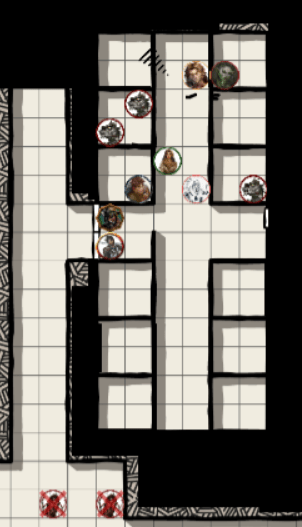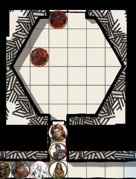 Alas, the imp attacked Thippet, and the people in the back were thinking about throwing or shooting things, which was very risky for Darion who blocked 90% of the corridor. Thankfully, they abstained from shooting him in the back – alas, the small Imp elected to leave Thippet alone for a moment and sting Darion from the front, and got him.