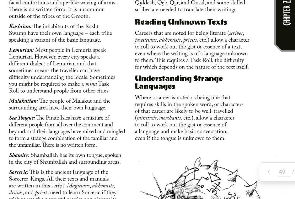 It is a wonderful system: If you like the Sword & Sorcery genre at all, check out Barbarians of Lemuria and play it.