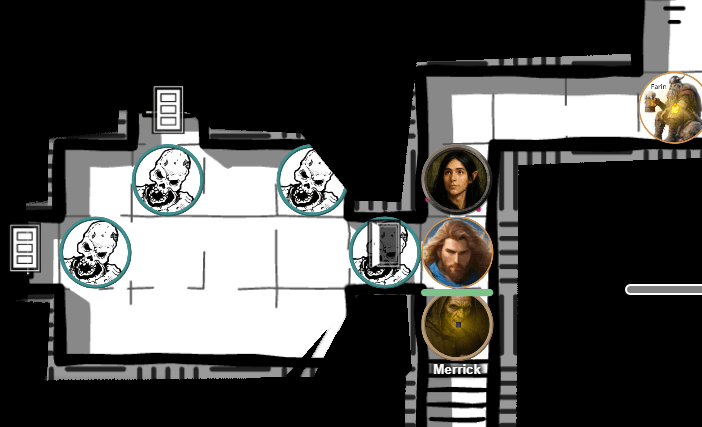 Now we could flood in and turn the tide! Farin cared for fallen Willem to give him bonuses for his death save, while the rest of us, Tah willing, managed to somehow smash the foul abominations one by one before they could bring us down. The dice were with us, otherwise the campaign might very well have ended right here in this dank room.