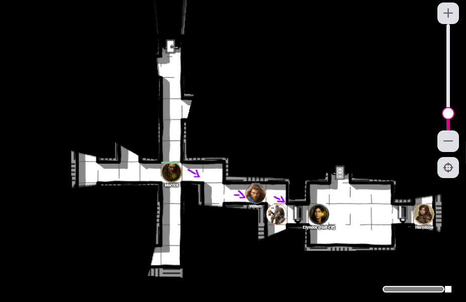 Another path went west and turned south from there, but with no footprints. Merrick turned to the others and asked them for the 10-foot-pole, because that seemed fishy. When he had it, he went through that corridor slowly and deliberately: he suspected a pit trap somewhere in here and was curious how deep it would be and what the walls would be made of. But he was wrong: It was not a pit trap, it was a different sort of mechanics; one that did not give him the information he wanted. But at least nobody had run into it, that was a good win.
