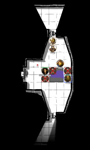 To the west Willem and Rugg found the room with the pedestals, where Farin had met the zombies a week ago; now everything was quiet. To the east, there was a locked door. Farin listened and heard movement: more zombies! He decided that the best way to deal with them would be like last time: up on the stairs. So he moved back up there and suggested someone open the door.